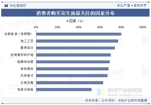 新颖度是消费者采办花生油的一个主要关心点,80%的用户最关心产物能否为当季新油,新花生、新颖油成为潜力卖点;同时,加工工艺和养分成分也是消费者采办花生油关心的要素。