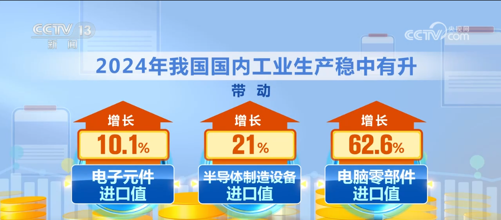 2024年,我国进口规模不竭扩大,不只满脚了国内出产需要,也丰硕了消费选择。客岁,我国国内工业出产稳中有升,带动电子元件、半导体系体例制设备、电脑零部件进口值别离增加10。1%、21%、62。6%;铁矿砂、天然气、煤等大商品进口量别离添加4。9%、14。4%。同期,我国很多平易近生消费品的进口需求较为兴旺,如服拆、生果、葡萄酒等进口值别离增加5。6%、8。6%、38。8%。